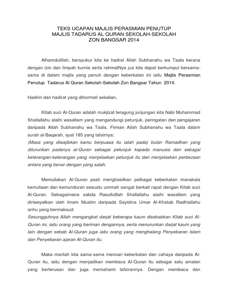 Teks Ucapan Majlis Perasmian Penutup Pdf